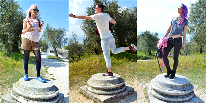 Day 2 at Lake Garda and once again our path took us to Sirmione. One would think, if you do sightseeing, fashion isn't that important. Not for me! I can not not think about my outfit in the morning. So before turning to the sightseeing part of that day, I'll show you our outfits of that day. And as it seems, as if my sis and my boyfriend love to pose, I sometimes have to force them.:)