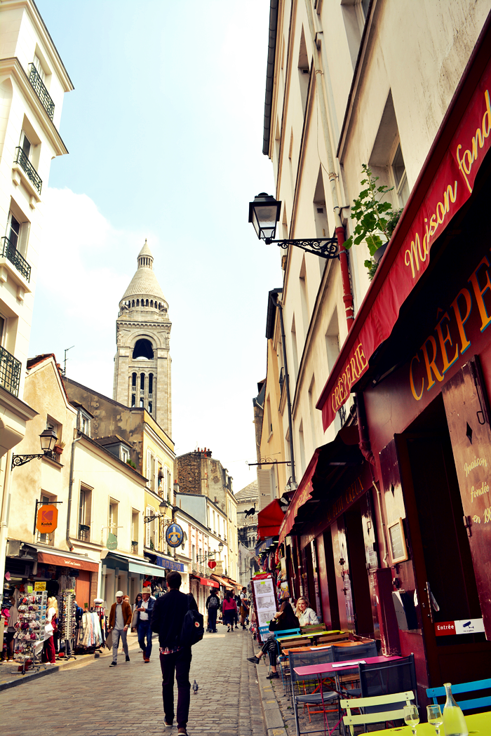 I think I've been to Paris already 3 times, but I didn't really explore the quarter of Montmartre properly. I just know the path from the subway station to the cathedral Sacre Coeur and the busy streets full of tourists and street vendors. This time our hotel was in that district, but 10 minutes away from that hustle. So on day 2 we got to know the picturesque streets and walked towards the cathedral, because Tim hasn't been there before. You would never guess, that you're in a metropolis, but rather in a little french village in Provence.